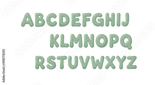 Fototapeta premium Whimsical cartoon alphabet with rounded, pastel green letters on a white background, perfect for educational design.