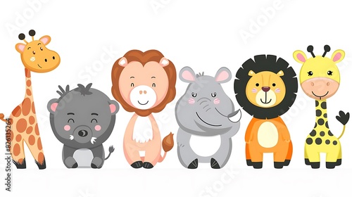 © abangaboy, Fototapeta premium Whimsical Cartoon Animals in Simple Draw Style on White Background
