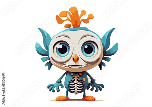 Fototapeta premium Whimsical Cartoon Bird Character Design Cute, Skeletal, and Playful Illustration