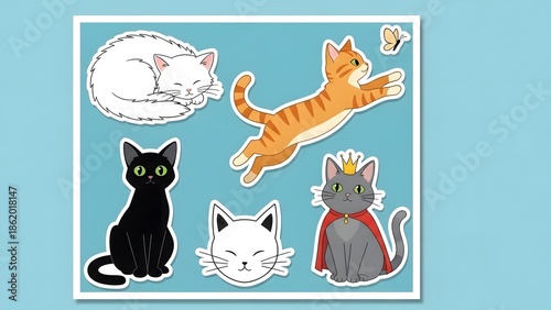 © Argprnslg, Obraz premium Whimsical Cartoon Cat Collection