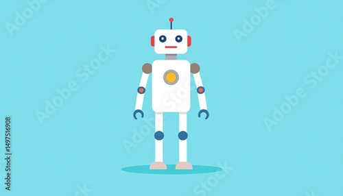 © little, Obraz premium Whimsical Cartoon Robot Illustration on Soft Blue Background for Children
