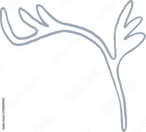 © cute_vector, Fototapeta premium Whimsical castle core line art silver illustration of simple leaf branch. Vector medieval hand drawn doodle.
