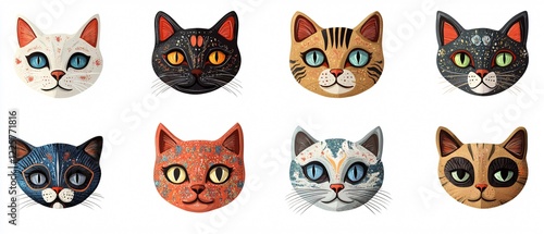Fototapeta premium Whimsical Cat Face Patterns for Creative Design Projects