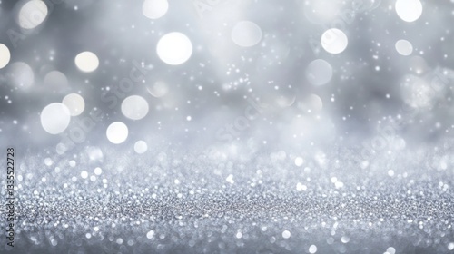 © nikomsolftwaer, Fototapeta premium Whimsical celebration background studio glitter backdrop magical environment close-up white and silver concept
