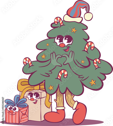 Fototapeta premium Whimsical cheerful christmas tree character