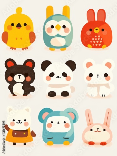 © Gank, Fototapeta premium Whimsical Children's Book Icons: Bold Line Cartoon Characters