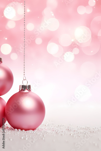 Fototapeta premium Whimsical Christmas Aesthetic: Pink Baubles on a Stunning Background