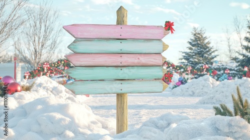 Fototapeta premium Whimsical Christmas Signpost in a Winter Wonderland Setting