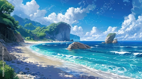 © RizArt, Fototapeta premium Whimsical Coastal Dream Captured in Illustration Wallpaper