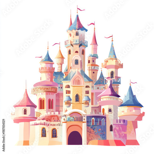 © ika, Naklejka premium Whimsical Colorful Castle Illustration