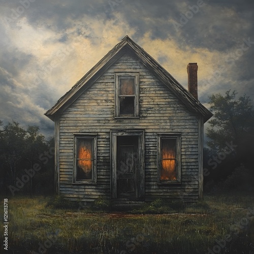 © Sakibjaman777, Obraz premium Whimsical cottage nestled amid lush greenery on a tranquil summer day