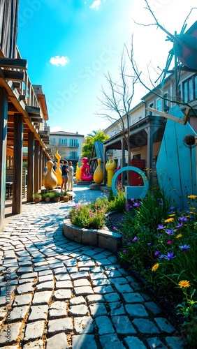 © Kimichiren, Fototapeta premium Whimsical Courtyard Art Oasis