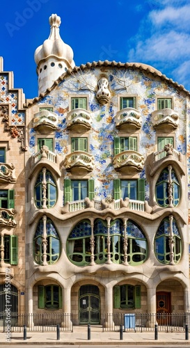 © Mobiles, Fototapeta premium Whimsical Curved Building: Colorful Terra Cotta Tiles, Unique Windows, Organic Design ??