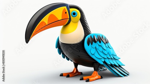 © Jenjira, Naklejka premium Whimsical 3D illustration of a cartoon toucan with oversized features perfect for childrens books games or themed party decorations