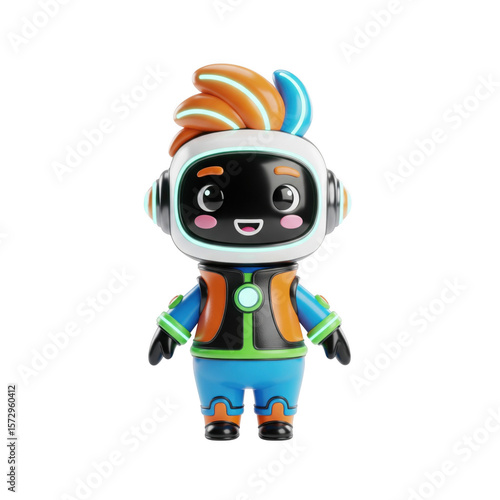 © novi syahdah, Obraz premium Whimsical 3D Rendering of a Charming Futuristic Character on a Dark Backdrop
