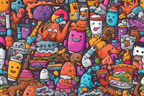 © avrezn, Obraz premium Whimsical Doodle Pattern for Playful Designs, Generative AI