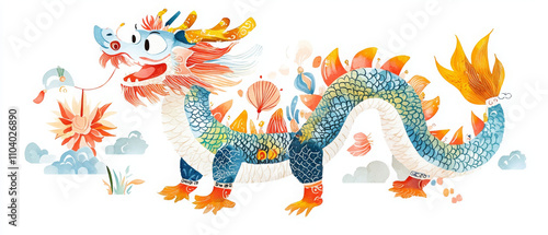 © Sukifli Dakheng, Obraz premium Whimsical dragon illustration with vibrant colors and playful design