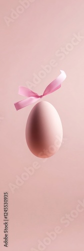 Fototapeta premium Whimsical Easter Aesthetic Pastel Floating Egg with Ribbon - Spring Event Design and Mothers Day Decor for Creative Marketing