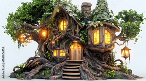 Fototapeta premium Whimsical Fairytale Home Isolated In White Background