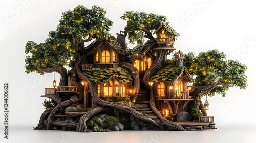 Fototapeta premium Whimsical Fairytale Home Isolated In White Background