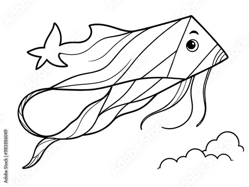 Fototapeta premium Whimsical Fish Kite Soaring Through the Sky: A Coloring Page Delight