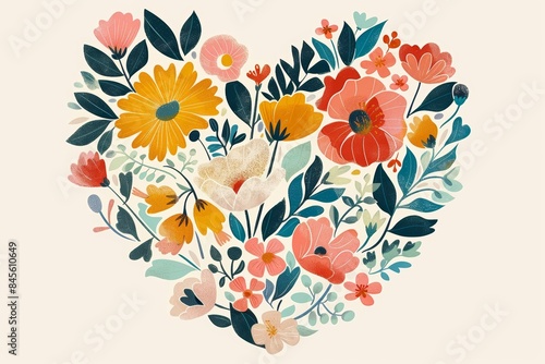 Obraz premium Whimsical Floral Heart Design for Print, Card, Poster - Joyful and Playful Illustration