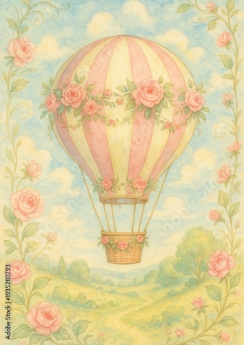© Rawpixel.com, Fototapeta premium Whimsical floral hot air balloon