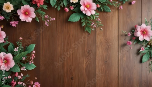 Fototapeta premium Whimsical floral patterns on a wooden surface, wood, illustrations, floral...