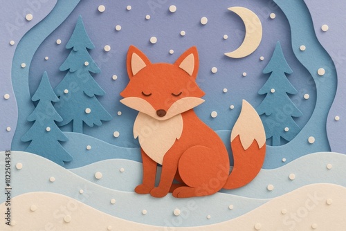 Naklejka premium Whimsical fox in snowy forest