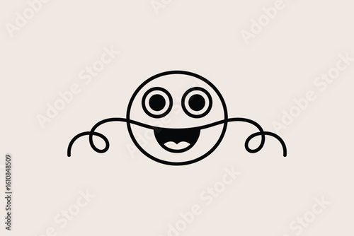 © VectorCrazeStock, Obraz premium Whimsical happy face with curly arms drawn in a simple line art style