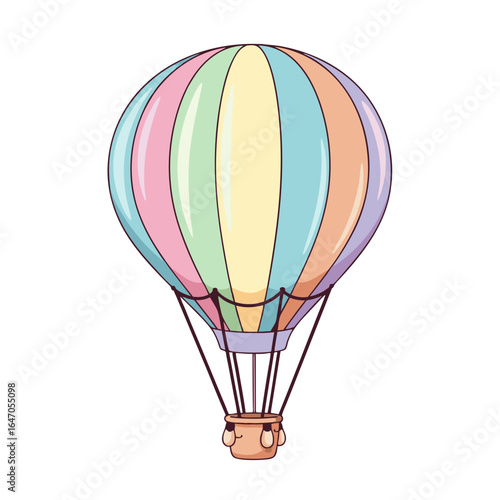 Fototapeta premium Whimsical hot air balloon with pastel stripes floating gently for children's book illustration or party decor