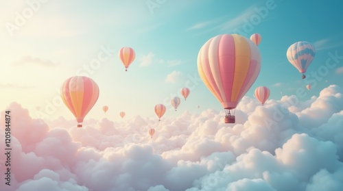 Naklejka premium Whimsical Hot Air Balloons in a Pastel Sky