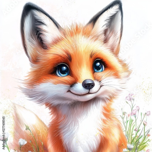 Fototapeta premium Whimsical illustration featuring a charming red fox.