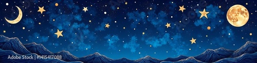 Fototapeta premium Whimsical night sky doodles in seamless pattern, celestial, moon