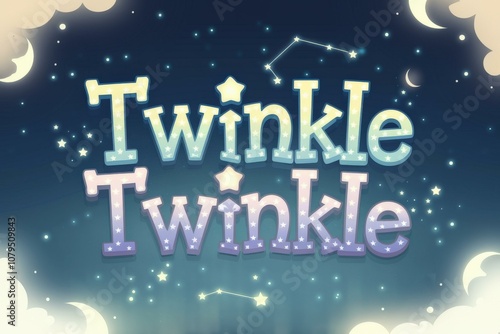 Naklejka premium Whimsical Night Sky Illustration Stars Clouds - Dreamy Pastel Design Children's Party Invitations, Nursery Decor, Celebrations