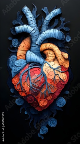 Fototapeta premium Whimsical Papercut of Stylized Healthy Heart and Vascular System