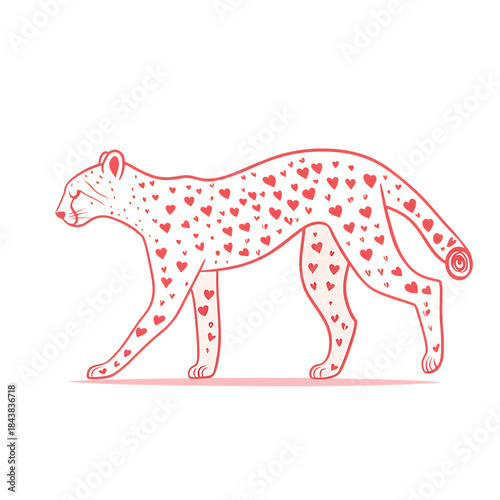 © Malekha, Fototapeta premium Whimsical Red Heart Patterned Cheetah Illustration on Transparent Background