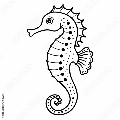 Fototapeta premium Whimsical Seahorse Illustration for Coloring or Crafts