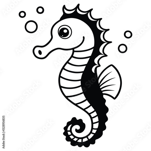 Fototapeta premium Whimsical Seahorse with Underwater Bubbles - Coloring Page.