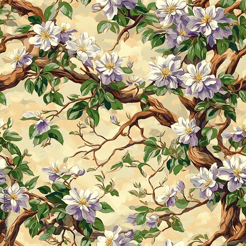 Fototapeta premium Whimsical Seamless Clematis Flower Arrangement