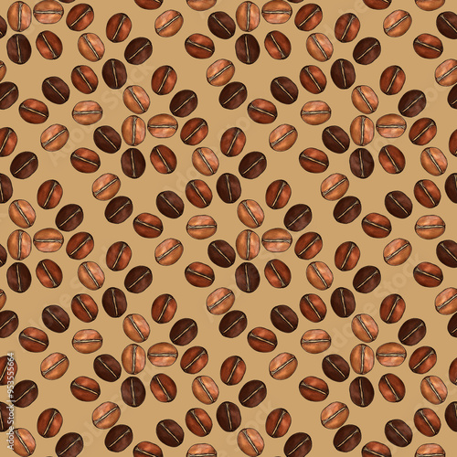 © Khrystyna Turchyn, Obraz premium Whimsical Seamless Coffee Beans Pattern