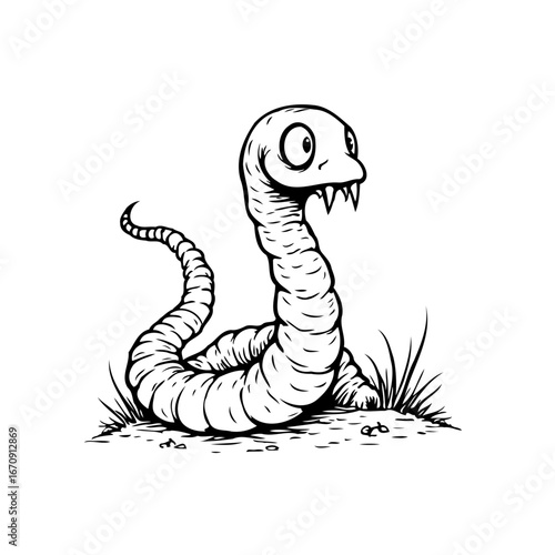 © Rahma, Fototapeta premium Whimsical serpentine drawing showcasing its playful character with subtle textures on clear white
