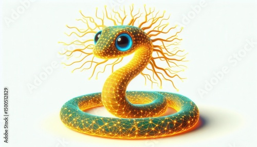 Fototapeta premium Whimsical solar-snake art digital realm 3d illustration bright colors playful vibe