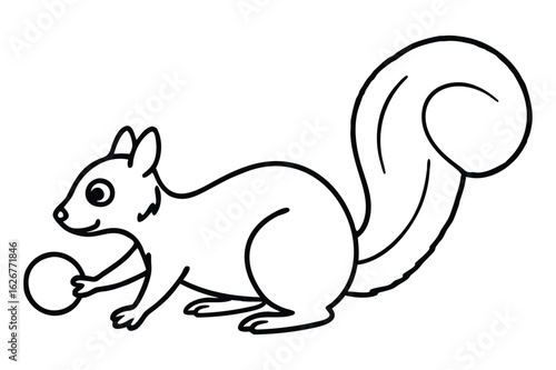 Fototapeta premium Whimsical Squirrel Cartoon Clipart Holding a Nut with a Bushy Tail and...