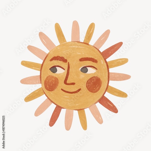 Fototapeta premium Whimsical sun with friendly face.