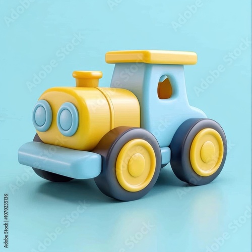 Fototapeta premium Whimsical Toy Tractor on Minimalist Blue Background