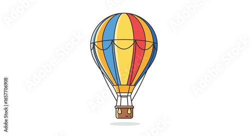 © Raisya, Naklejka premium Whimsical Vector Illustration of a Striped Hot Air Balloon Against a Clean White Backdrop