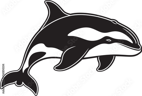 © BABBAN, Naklejka premium Whimsical Water Warrior Charming Orca Symbol Sweet Sea Sentinel Cartoon Orca Logo Design
