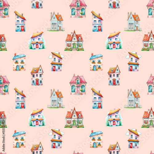 Obraz premium Whimsical Watercolor House Pattern
