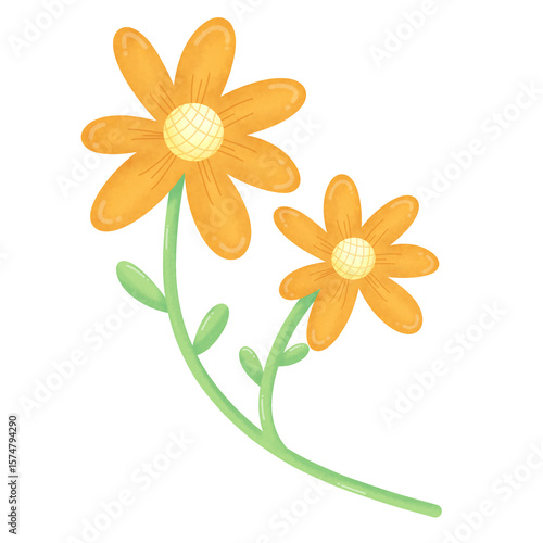 © Mudhofeeya, Naklejka premium Whimsical Watercolor: Twin Orange Flowers with Green Stem.